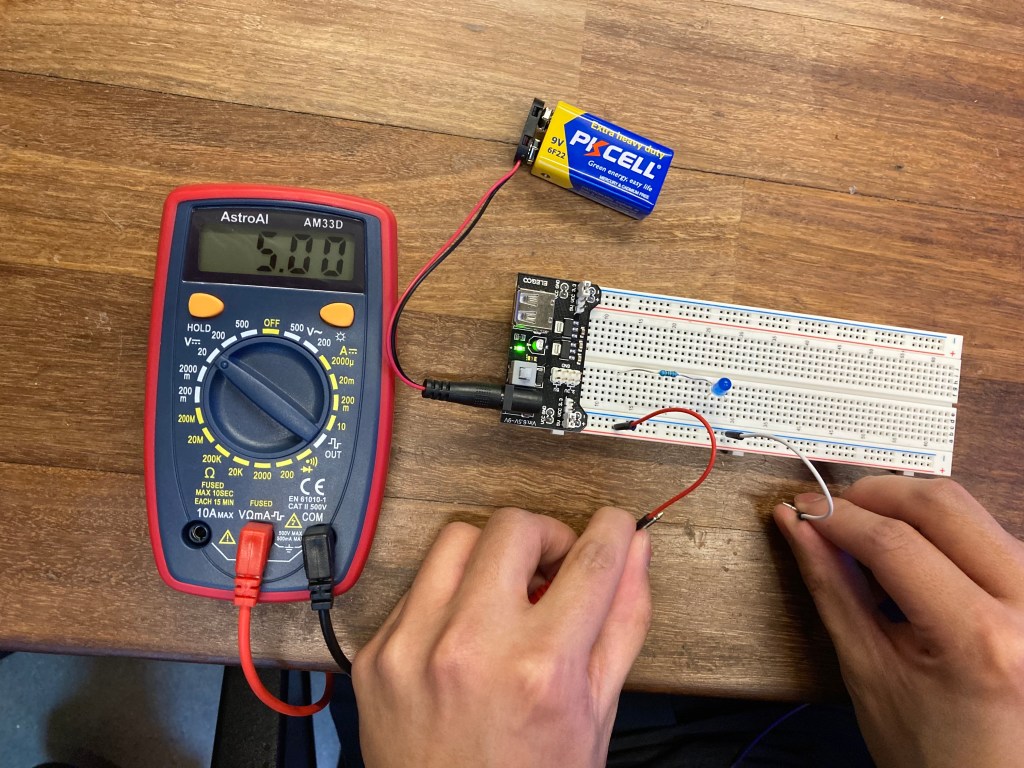 Using the Multimeter again, I measured the voltage of the 5V circuit to ensure the correct power supply was used to power the circuit.