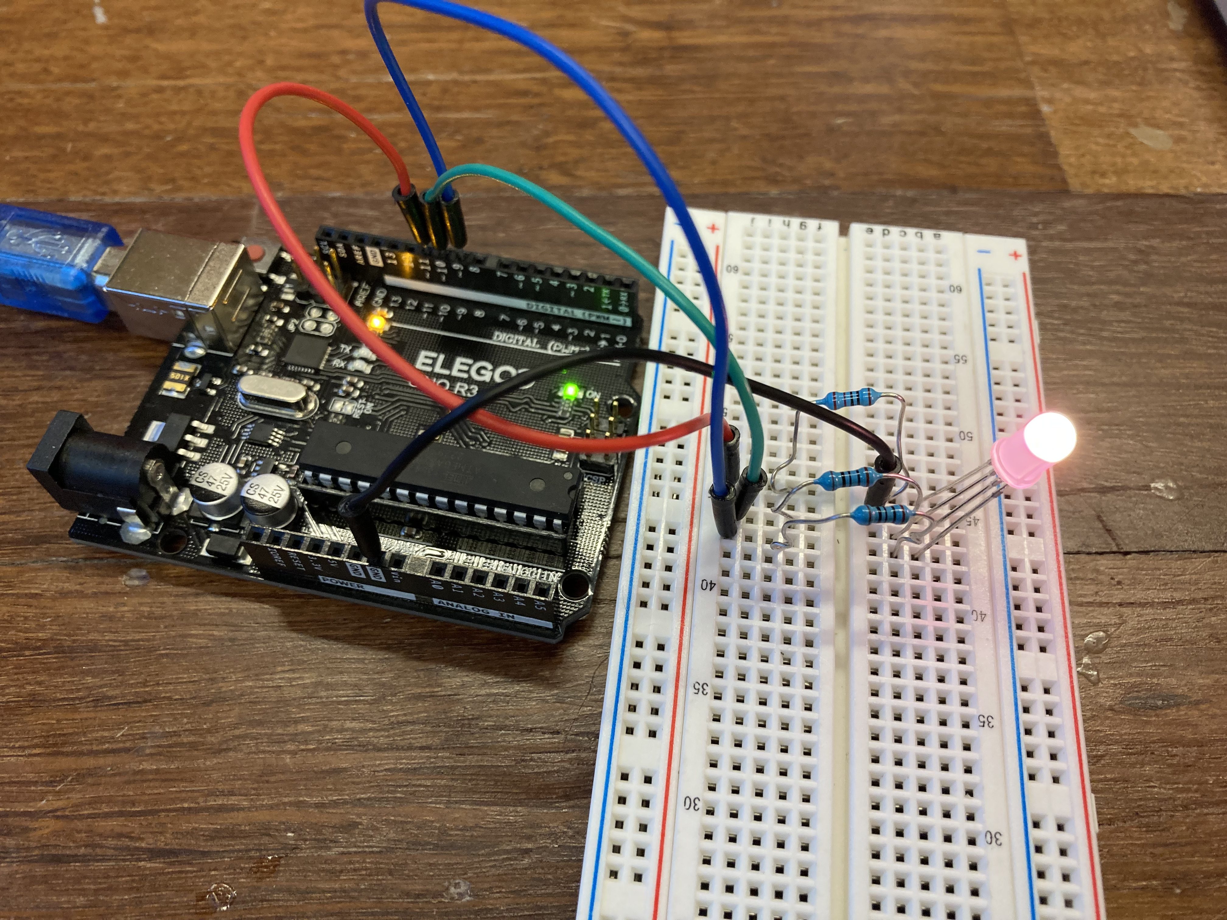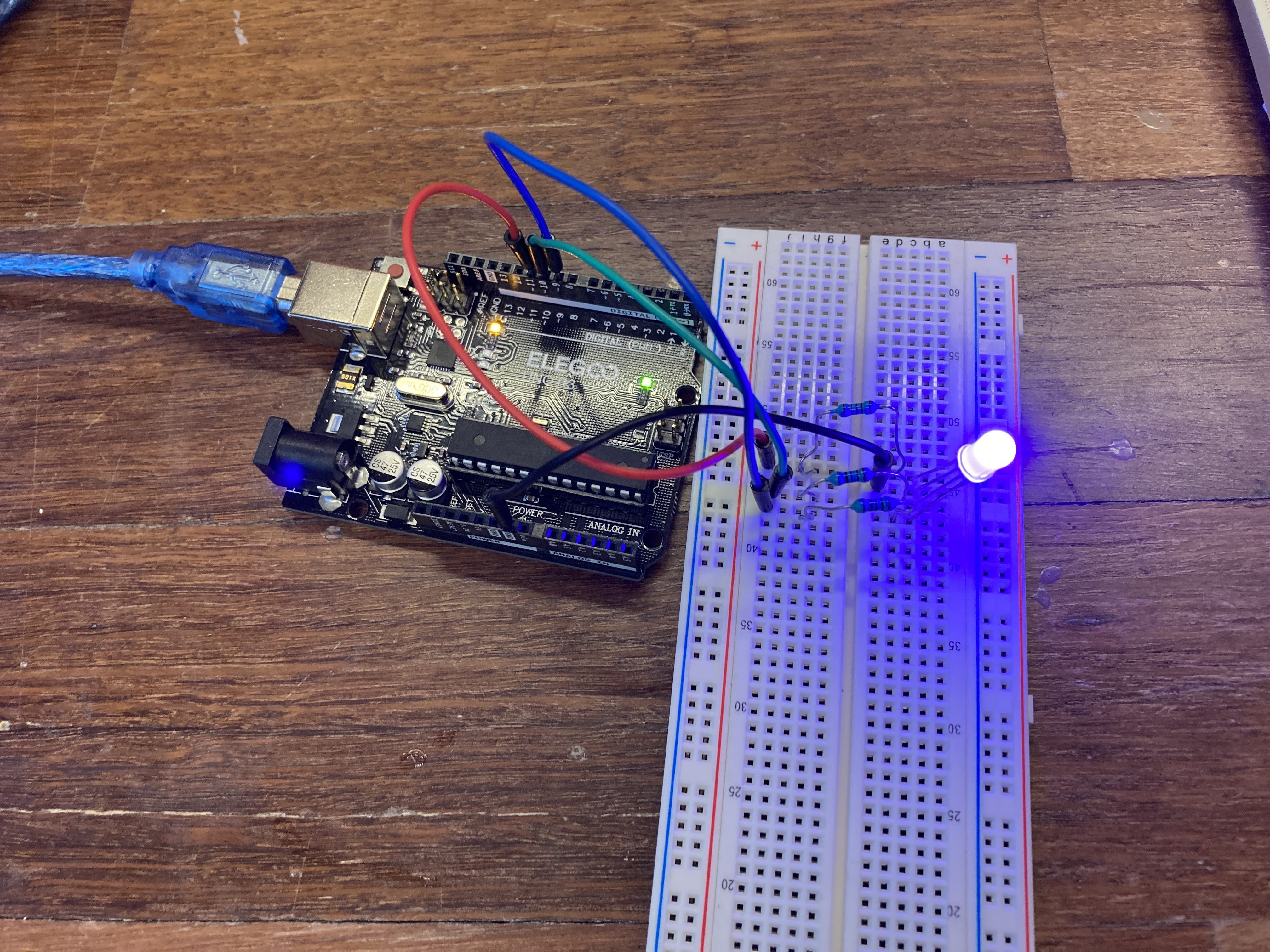 Now that the board was set up, I lit up the LED in four different colors.